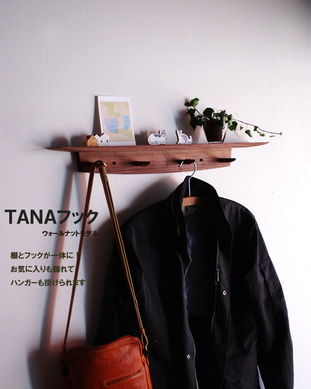 壁掛け棚/壁掛フック タナフック ウォールナットモデル1台2役の木製壁掛け棚 [TA.F-wn]