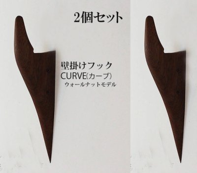 2個セット 壁掛けフック CURVE(カーブ)ウォールナット 壁の飾りになるコートフック [F-cu-wn2]