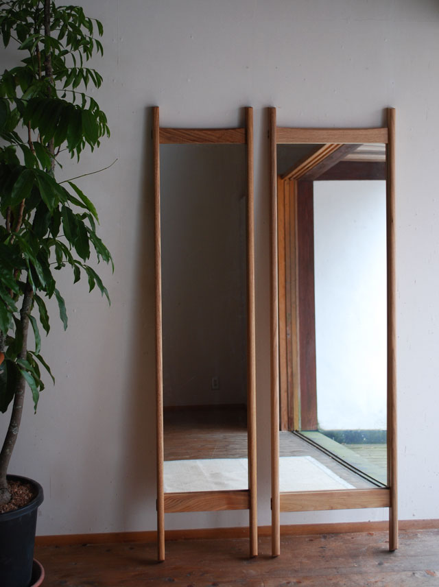 通しホゾが構造とデザインを兼ね、この姿見のアクセントになっています